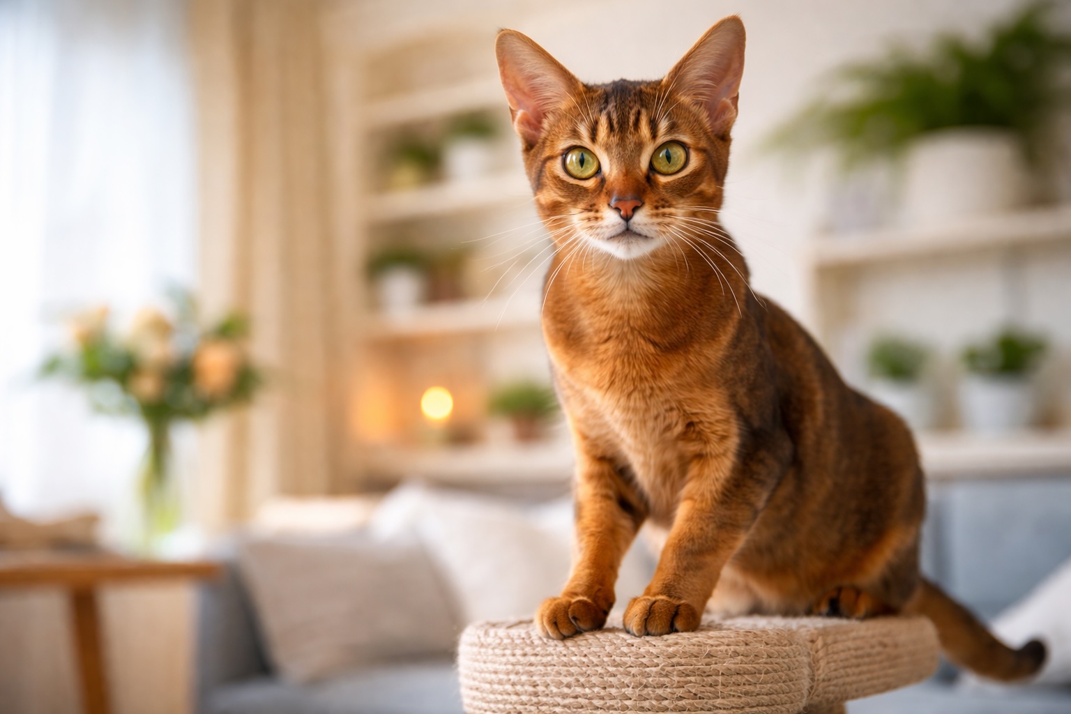 L’Abissino non è semplicemente un gatto energico: è una razza con forte spinta esplorativa e bisogno di controllo dello spazio. Tende a muoversi in verticale più che in orizzontale e sviluppa rapidamente routine di osservazione dell’ambiente.