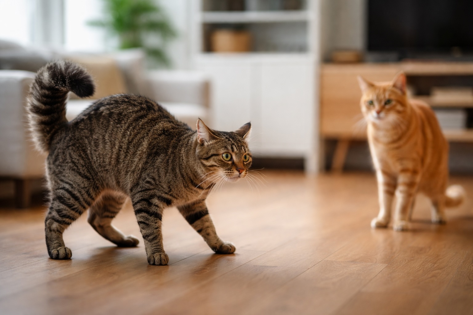 Quando l’aggressività reindirizzata coinvolge più gatti, il rischio principale è la rottura dell’equilibrio sociale.