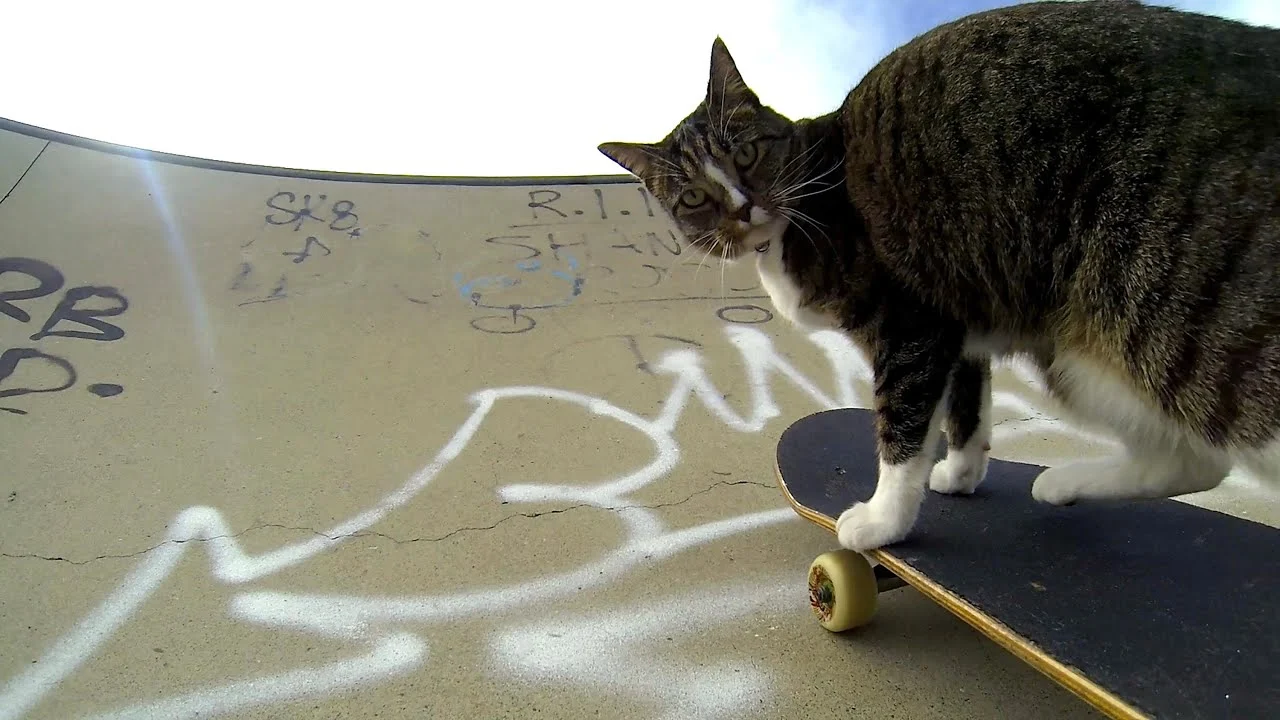 Questo gatto ama andare in skateboard. Ed è pure bravo!