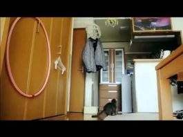 Max-Arthur intanto che pulisce casa con il Roomba ne approfitta per scacciare il suo amico cane Sharky.