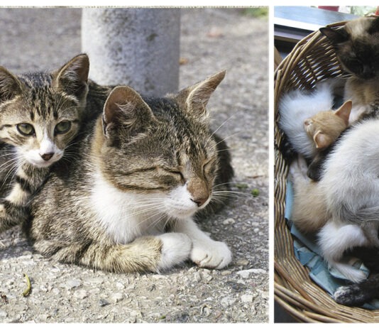 Mamma gatta lava i suoi cuccioli… anche se non vogliono