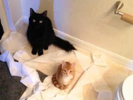 Mamma gatta insegna i primi passi ai propri cuccioli