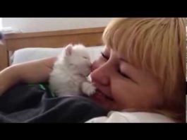 Gattino chiede le coccole alla sua mamma umana
