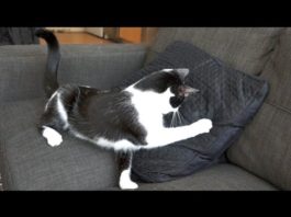 Questo gioco per gatti è bellissimo. Il gatto cerca di afferrare la pallina al suo interno ma non sempre ci riesce.