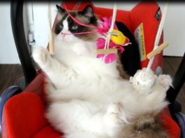 Un vero e proprio piumino bianco questo micione persiano, intento a giocare con una cannetta. Le riprese al rallentatore ne fanno apprezzare le movenze...