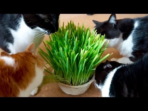 La mamma umana ha portato a casa un bel vasetto ghiotti pieno di erba gatta. Tutti a “tavola”!