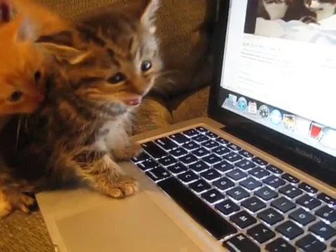 I video di gattini non piacciono solo agli umani, ma anche ai gattini! Questi tre simpatici pelosini si intrattengono con un video molto popolare su YouTube, ovvero “The two talking cats”, con due gatti che “parlano” tra loro. Che dire, un programma molto interessante!