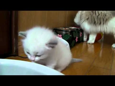 Questo gattino sta cercando di bere da una bacinella, anche se ha un po’ paura dell’acqua
