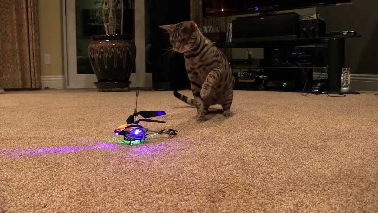 Queste strane creature volanti, chiamate elicotteri, proprio non mi piacciono, e vanno abbattute. Questo il pensiero del simpatico gatto Bengal protagonista di questo video.