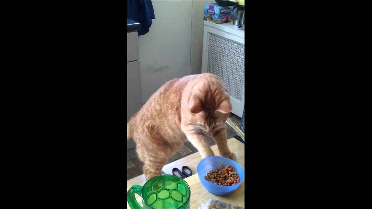 A questo gatto piace mangiare a tavola come tutti gli altri.