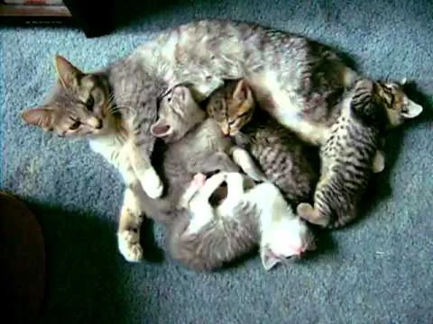 Ecco a voi mamma gatta e i suoi gattini. Non sono i più teneri del mondo?