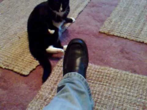 Il gatto del video ha preso in antipatia il piede del suo amico umano.