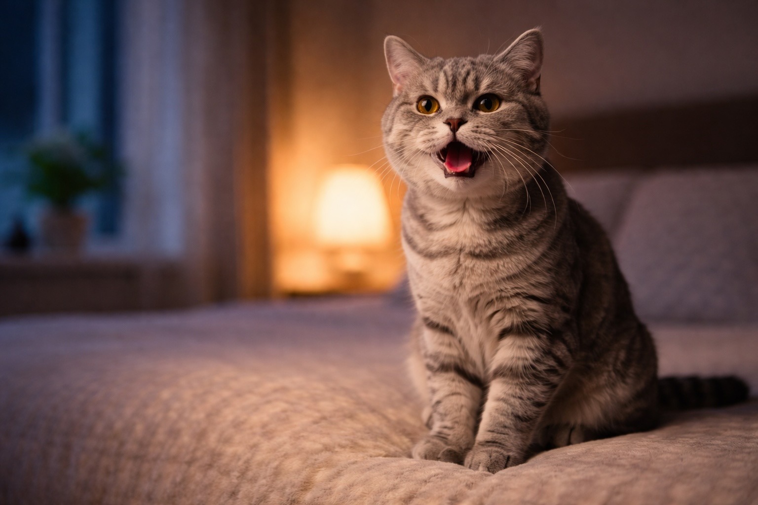 La notte è il momento in cui lo stress accumulato durante il giorno può emergere. Cambiamenti recenti, routine spezzate, tensioni ambientali trovano spazio proprio quando tutto tace. Il miagolio diventa uno sfogo, non una domanda.