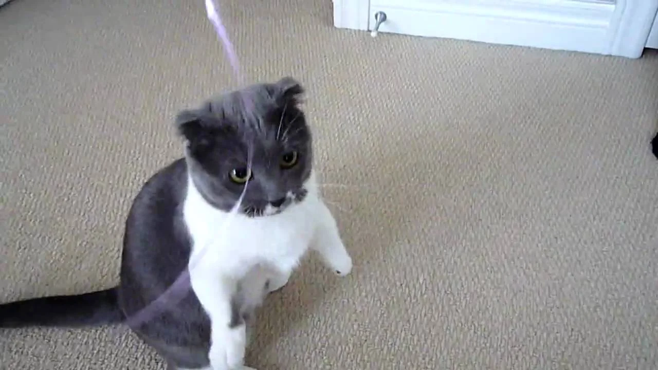 Munchie gioca con un nastro avanzato dalla sua prima festa di compleanno.