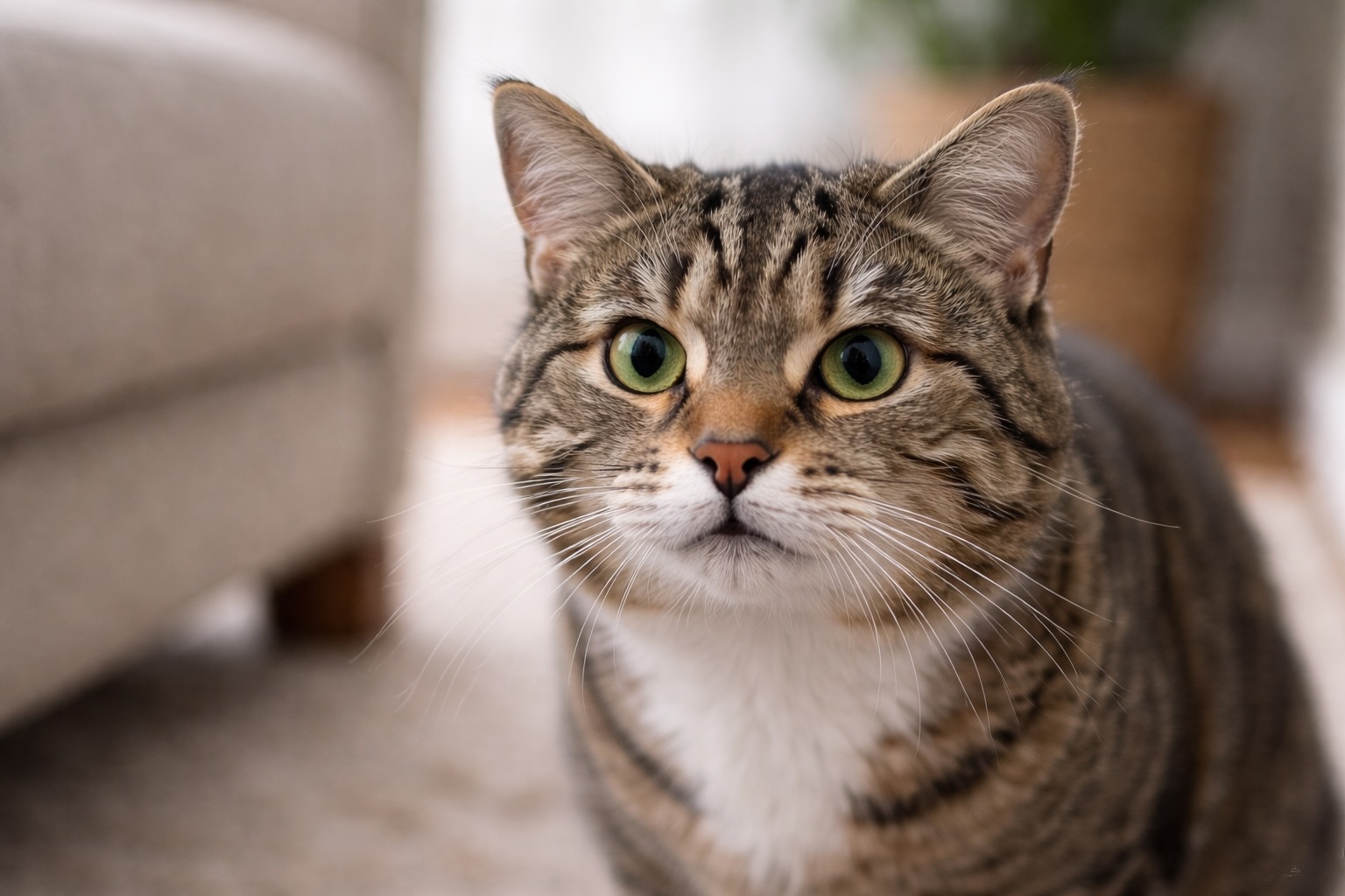 Un gatto rilassato tende ad avere lo sguardo morbido, spesso con gli occhi leggermente socchiusi. Quando guarda una persona e chiude lentamente gli occhi per un momento, di solito si tratta di un segnale di fiducia. È un comportamento molto diffuso tra gatti che si sentono al sicuro.