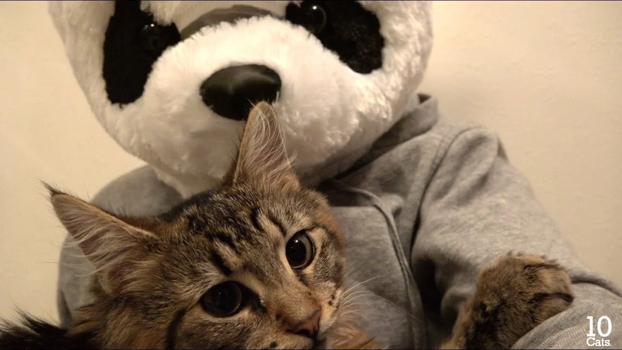 Questo panda ama letteralmente il gatto Osamu e anche quest’ultimo ricambia…peccato che il panda sia un peluche!