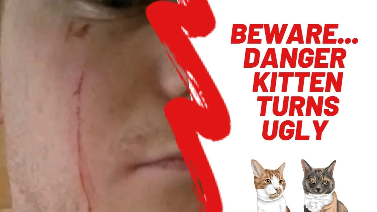 Questo gattino si diverte a giocare con la sua coda sulla testata del letto…peccato che sotto ci sia il suo amico umano, che rimedia qualche graffio