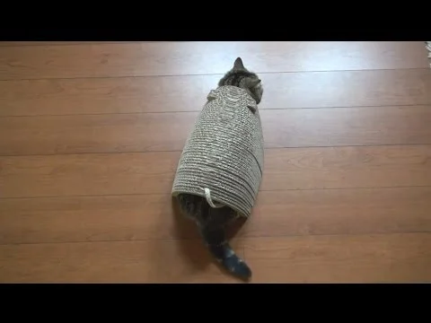 Maru, che è un giocherellone, dopo essere entrato in utte le scatole possibili di casa, decide di infilarsi pure nel tiragraffi