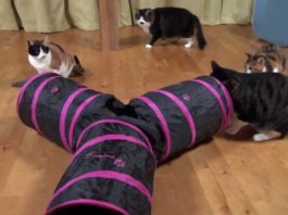 Questi piccoli gattini hanno un incontro molto particolare con il gatto grande di casa. Cosa succederà?