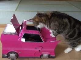 Ma quanto è bella quella mela rossa! Ed è pure comoda. Una fantastica e originale cesta per gatti.