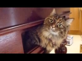 Gru è un gatto Sphynx e vive con Blu, esemplare di Ragdoll. In questo video Gru chiede insistentemente la pappa alla sua mamma umana,...