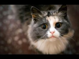 Questo gatto sente il profumo del pesce sulla tavola ma nessuno gliene vuola dare un po'. Rassegnato alla fine se ne va.