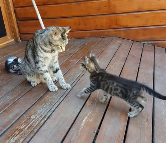 Mamma gatta parla con i suoi gattini
