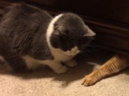 Questo gattino è semplicemente stupendo: guardate cosa fa con le zampine per attirare l'attenzione dei suoi a-mici umani...