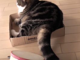 Questo gatto si è proprio fissato con il giochino che c'è dall'altra parte della rete. Riuscirà a prenderlo?